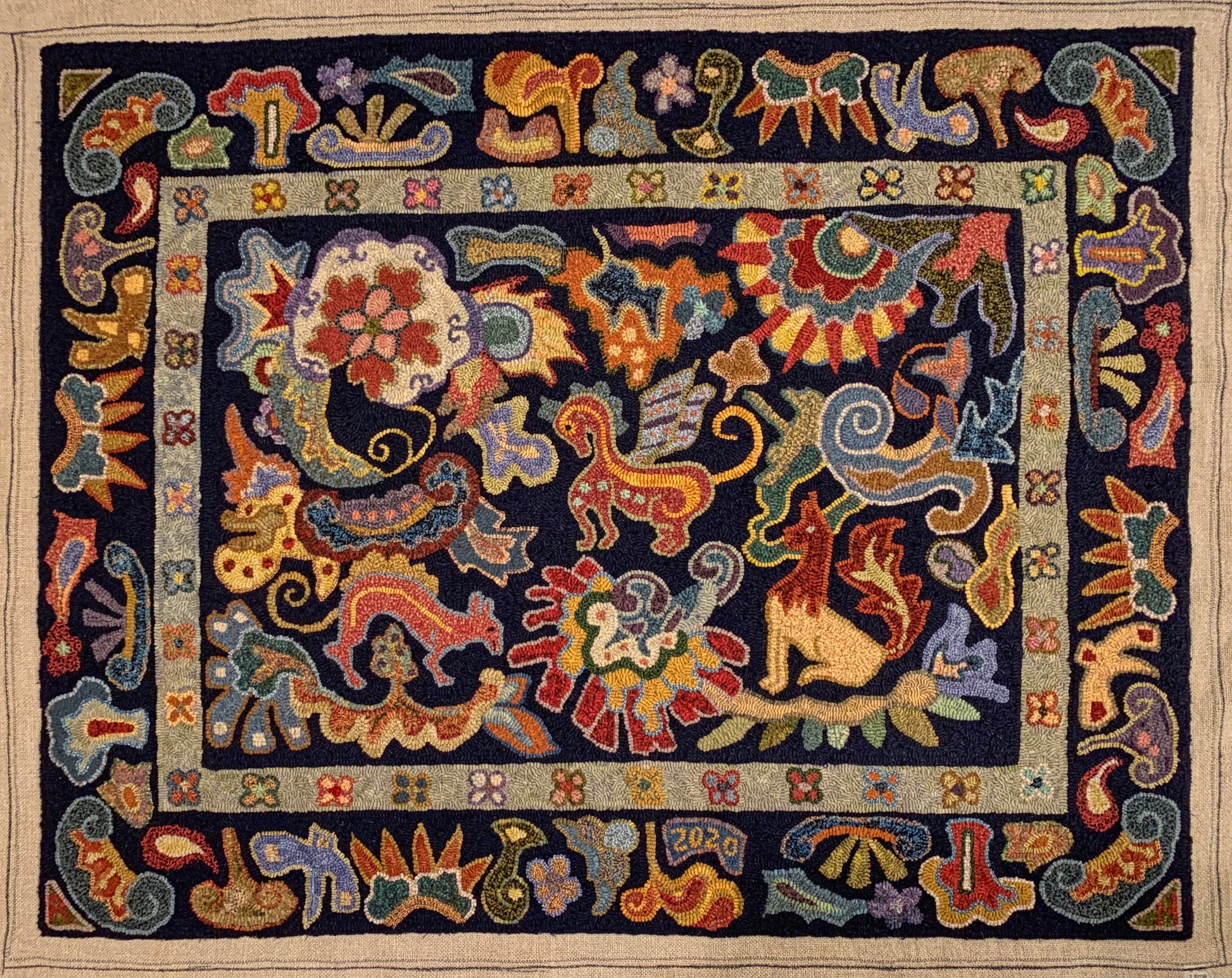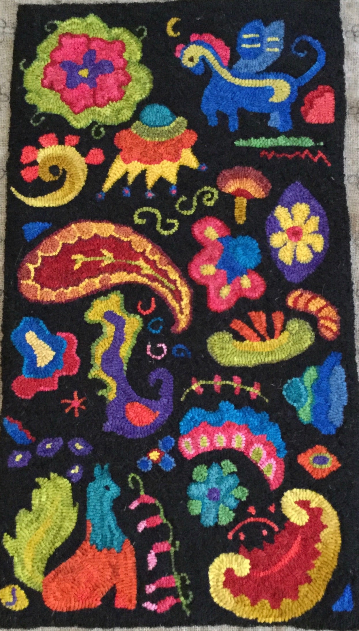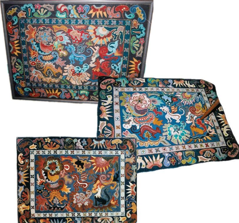 Hooked here by Jeanne Benjamin, Jan King, Susan DePuma, Lee Ridgway.