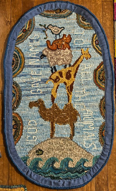 21"x31". This adorable piece shows a friendly whale helping its land-based friends get ashore! A great whimsical addition to a child's room or nursery. Bright colors can be used or go for the imaginative textures and brilliance!