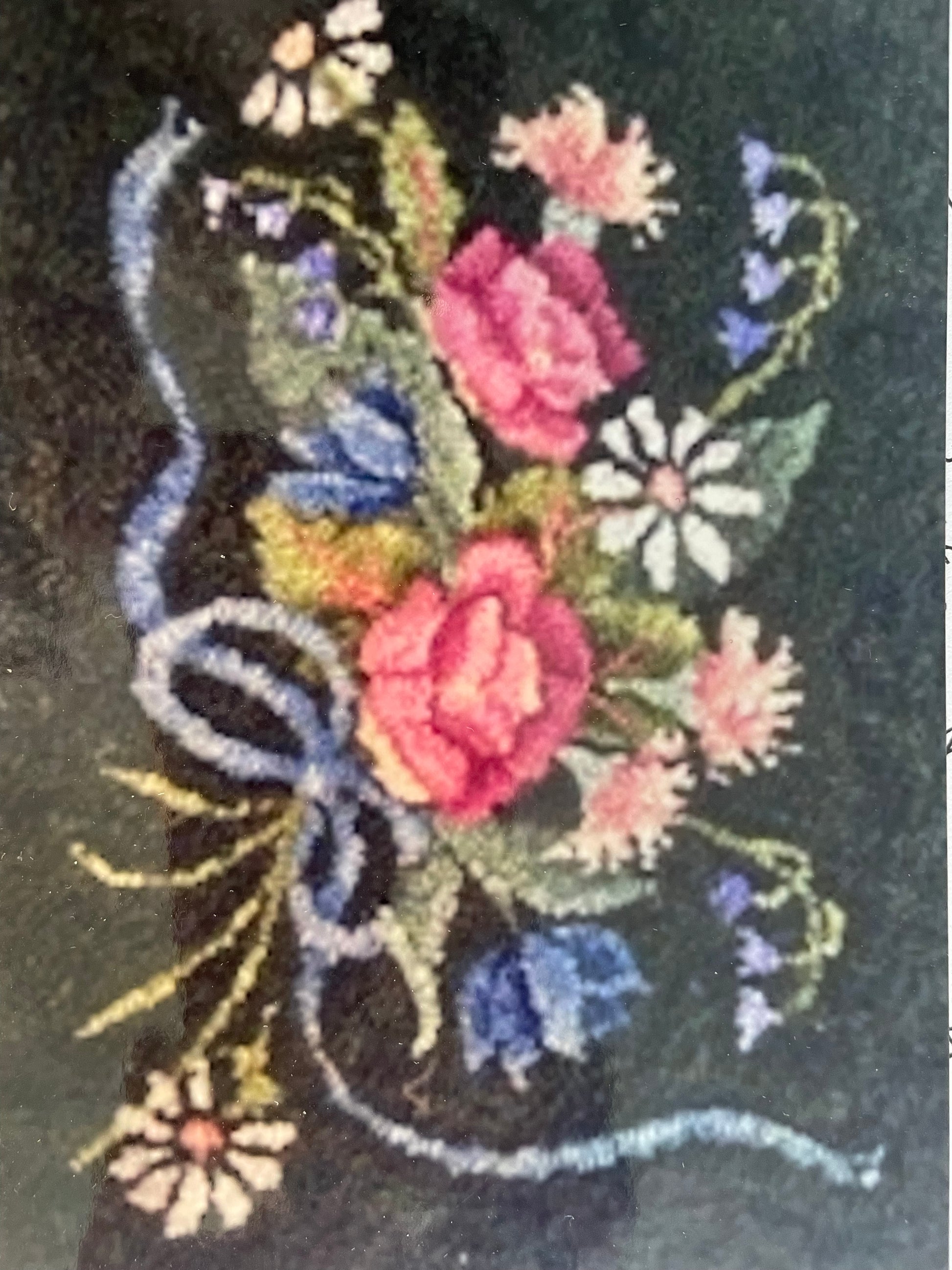 12"x17". A very sweet and lovely floral piece that could be sized for your own footstool or a wall hanging or a pillow.