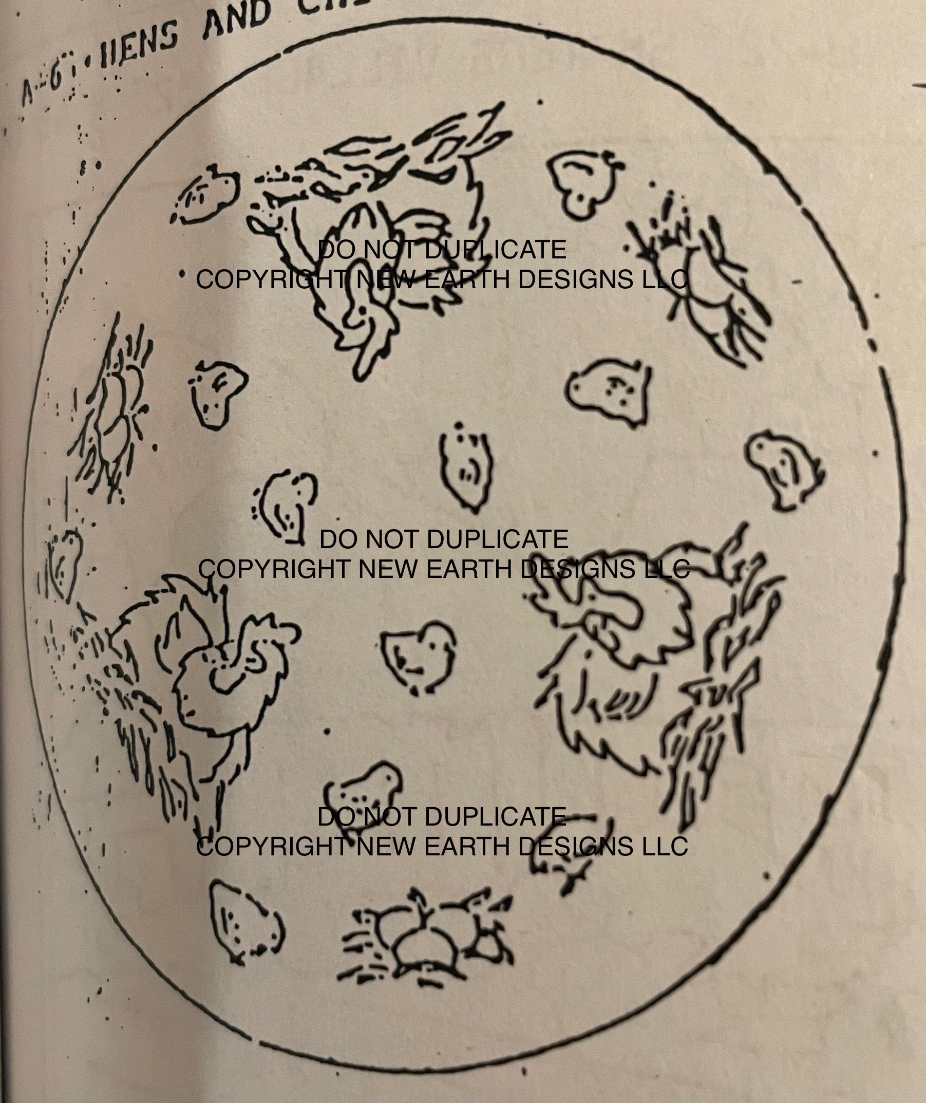 36" round. This adorable piece is well-balanced...and think of all the soft yellow that will be hooked into it! Just makes you smile thinking about it!