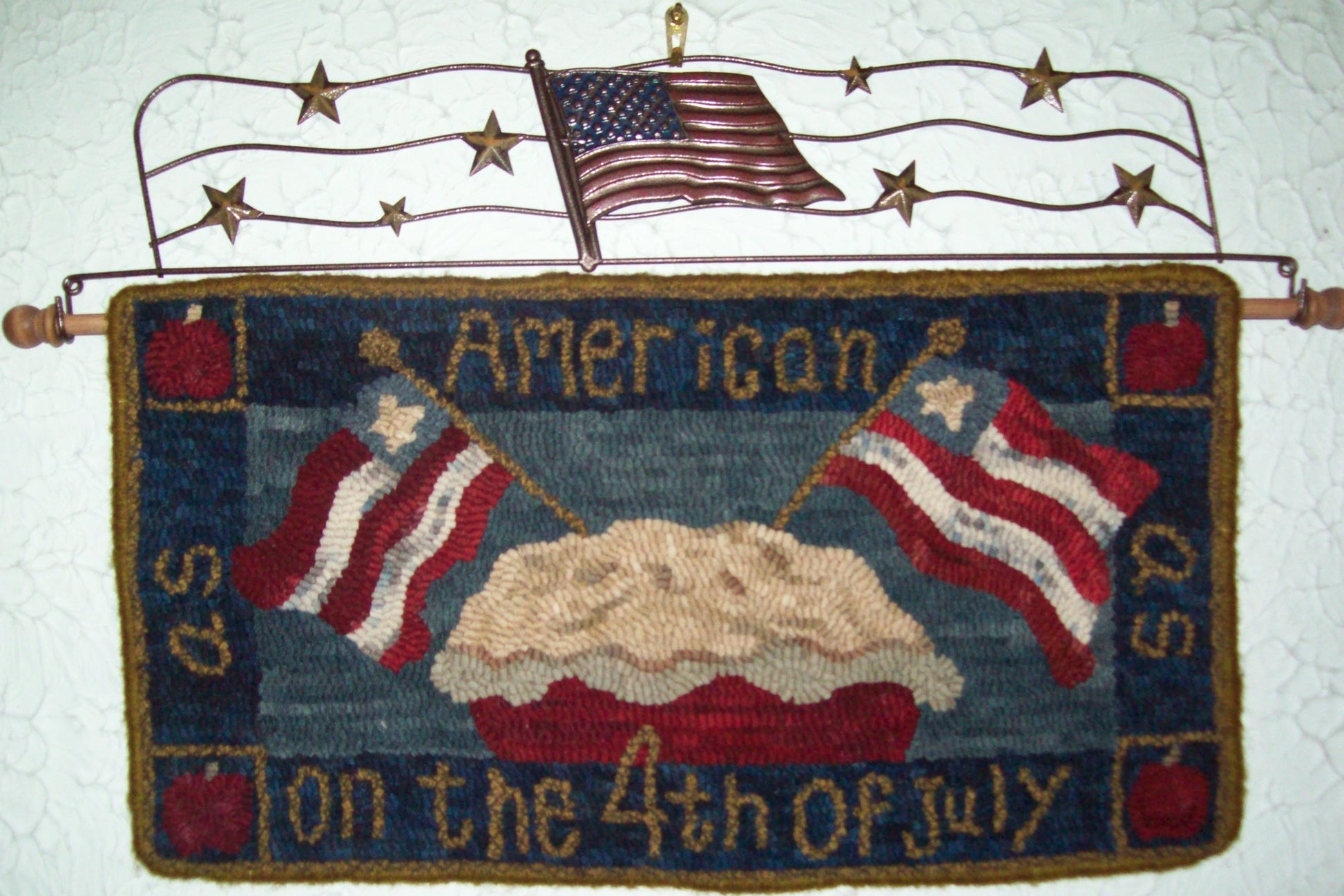 10"X20". A variation on the American Pie piece by adding "on the 4th of July". A classic primitive or folky piece in two sizes.