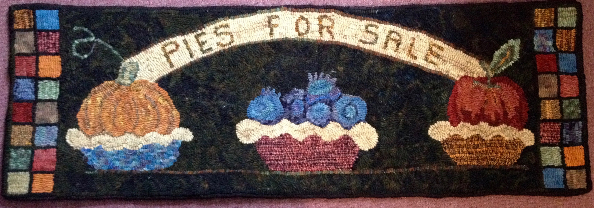 16"x44". A great kitchen rug or a wall hanging. We love pies! A great border to play with color, too.