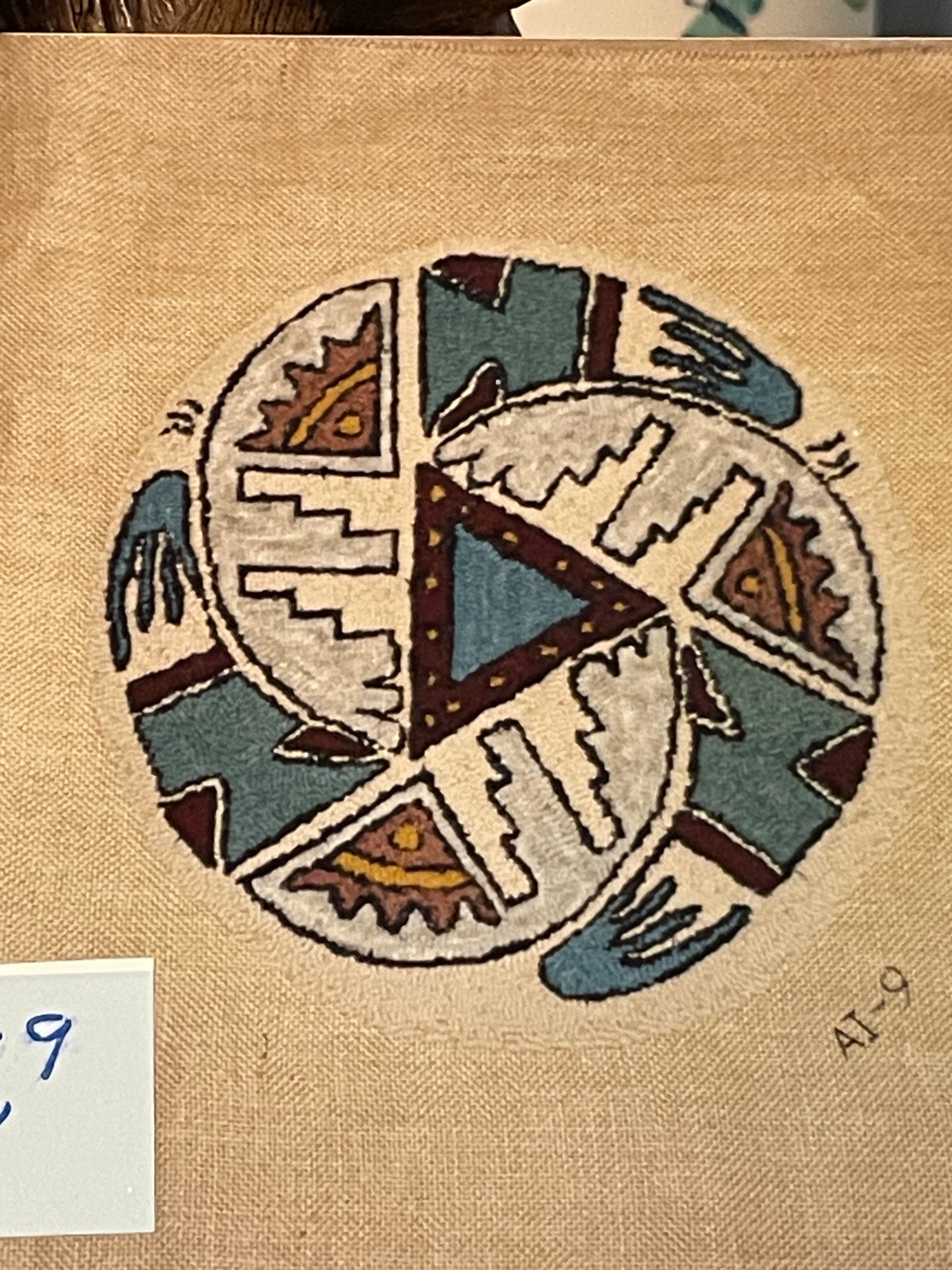 15" round that could be hooked in nice earthen tones. Could be framed for a nice wall hanging.