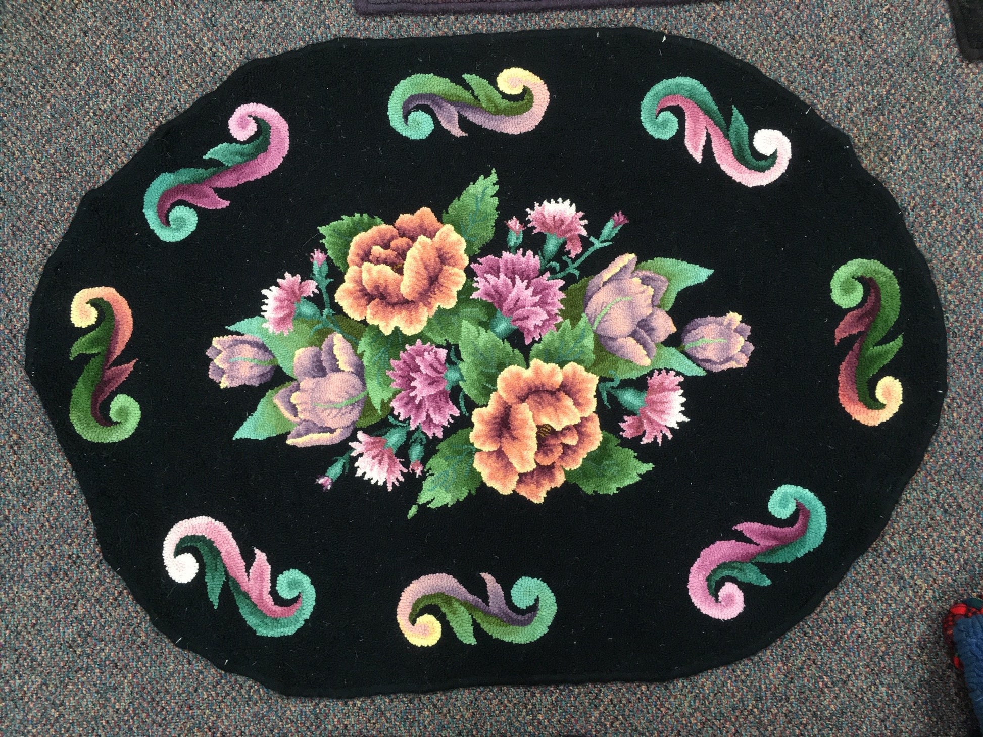 28"x41". This traditional rose rug with scrolls is great for learning or practicing your shading!
