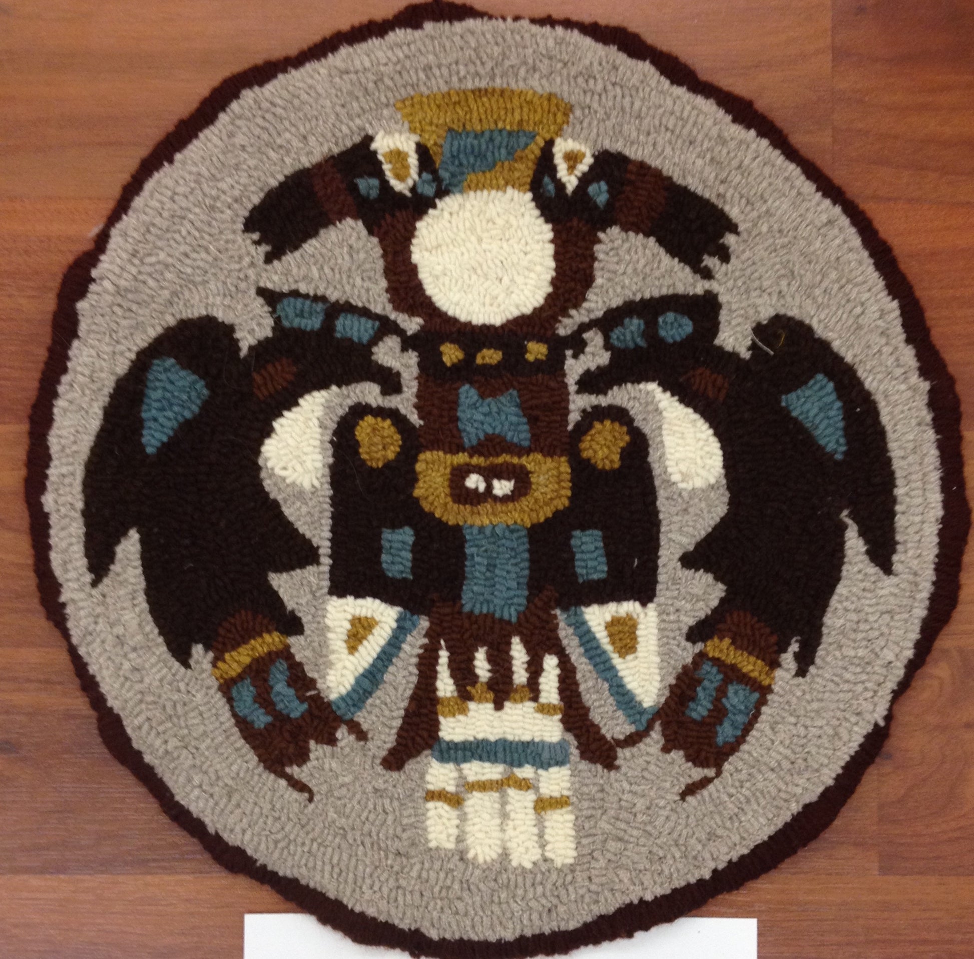 15" round that could be hooked in nice earthen tones. Could be framed for a nice wall hanging.
