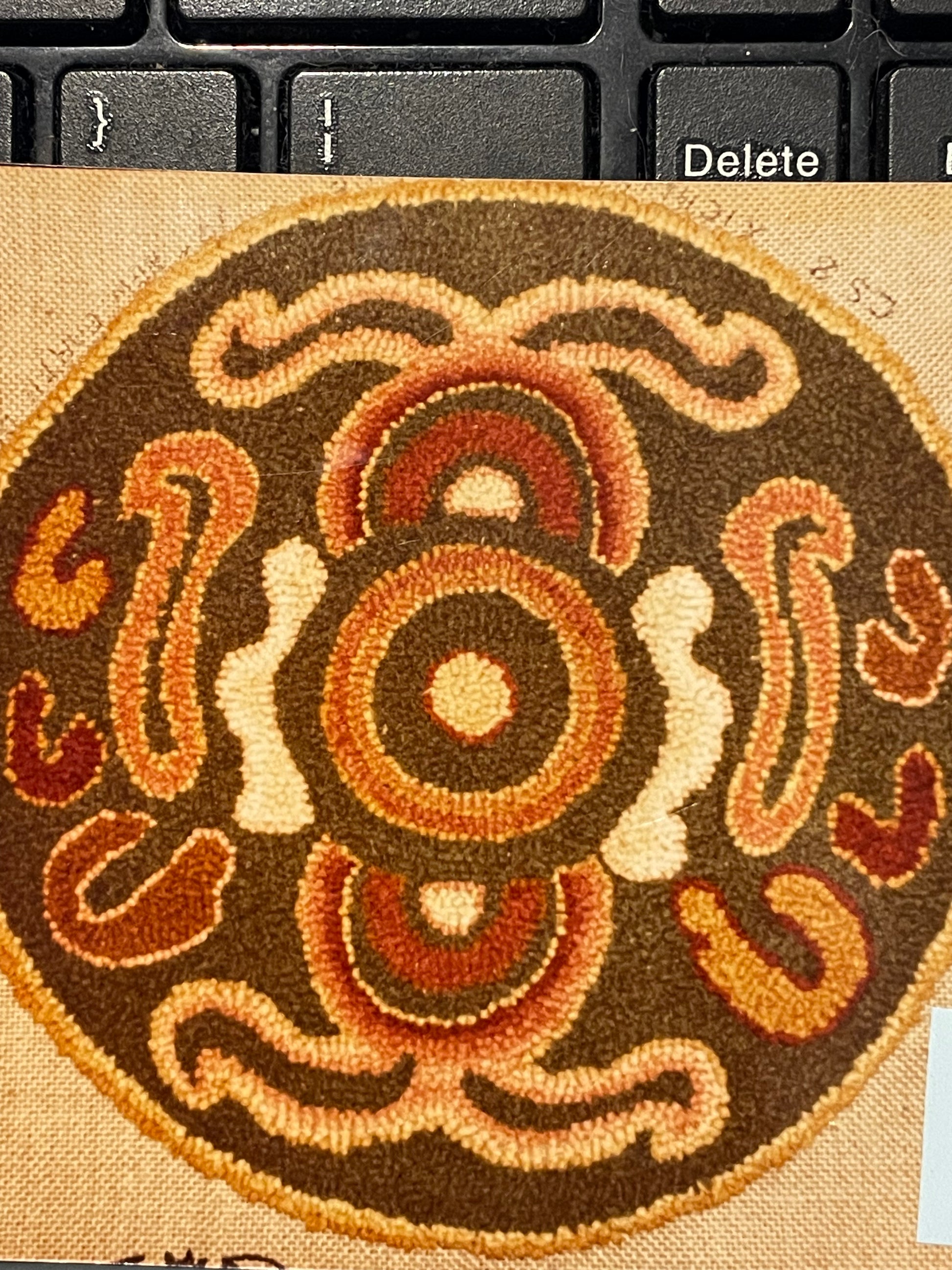 14" round that could be hooked in nice earthen tones. Could be framed for a nice wall hanging.